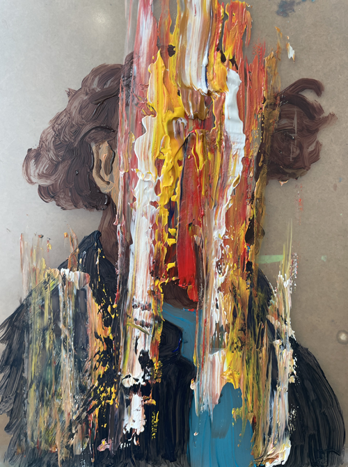 Clemence Devienne’s painting is haunted by the theme of madness and its representation. On these canvases, her artistic gesture is lively, impulsive, vibrant, and the lines are often raw. She has a direct relationship with the material. Without preparatory drawings, the lines are reworked directly into the color. The faces she paints convey a tension between strength and fragility, between apparent coherence and inner cracks.